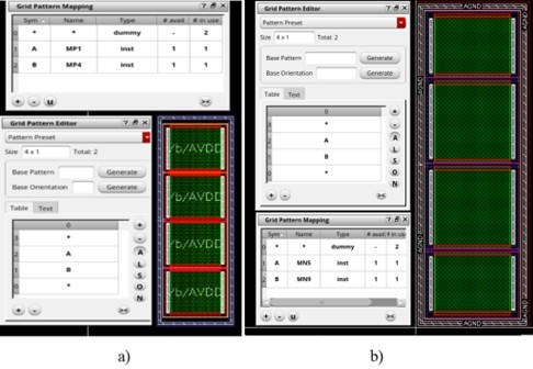 Рисунок 15. Массив транзисторов: a) MP1(A), MP4(B); b) MN5(A), MN9(B)