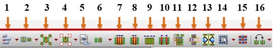 8 – Abut; 9 – Unabut All; 10 – Unabut; 11 – Sync Abut OFF; 12 – Member Alignmemt/Spacing; 13 – Merge Layers; 14 – Guard Ring; 15 – Pattern; 16 – Swap