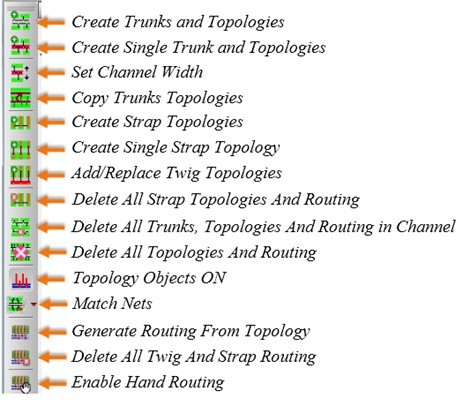 – удалять всю топологию трассировки в выбранном канале (инструмент Delete All Trunks, Topologies And Routing in Channel);